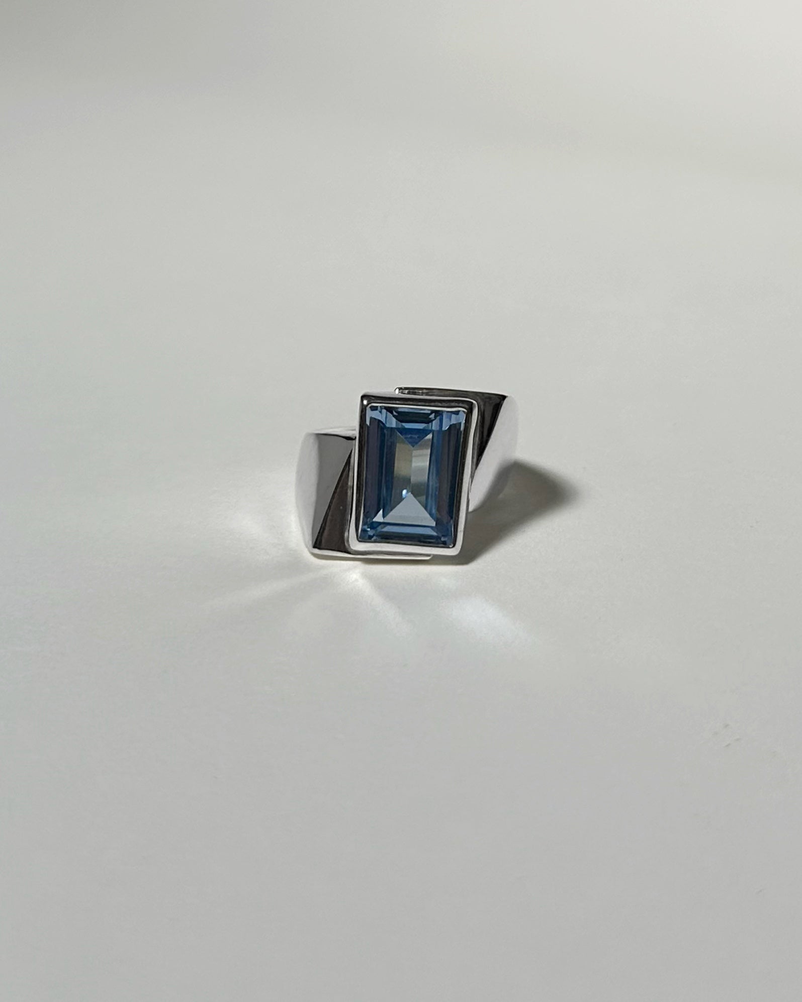 Material: Recycled 925 silver, synthetic aqua spinel